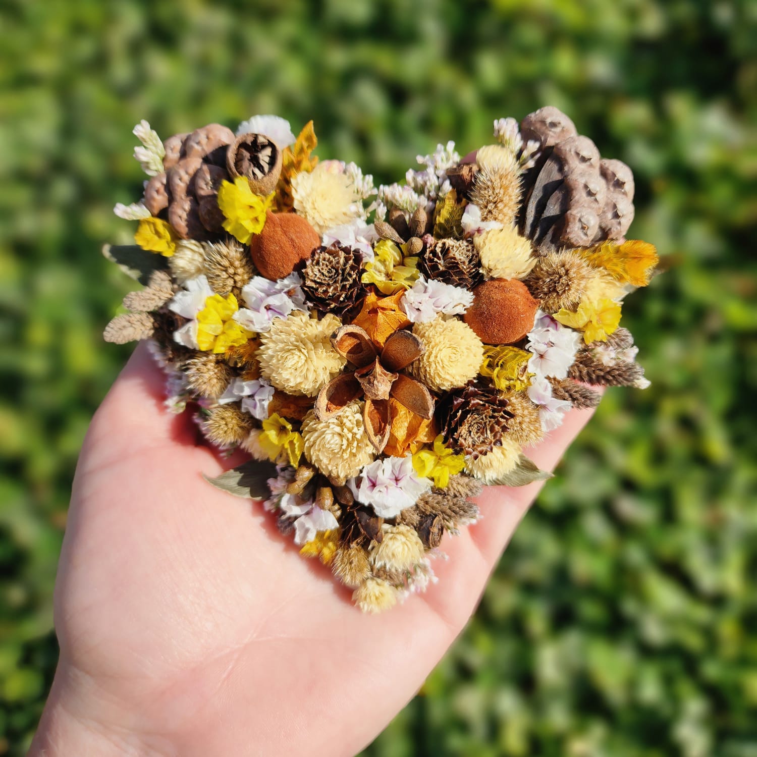 Feito à Mão - com flores e folhagens naturais desidratadas.